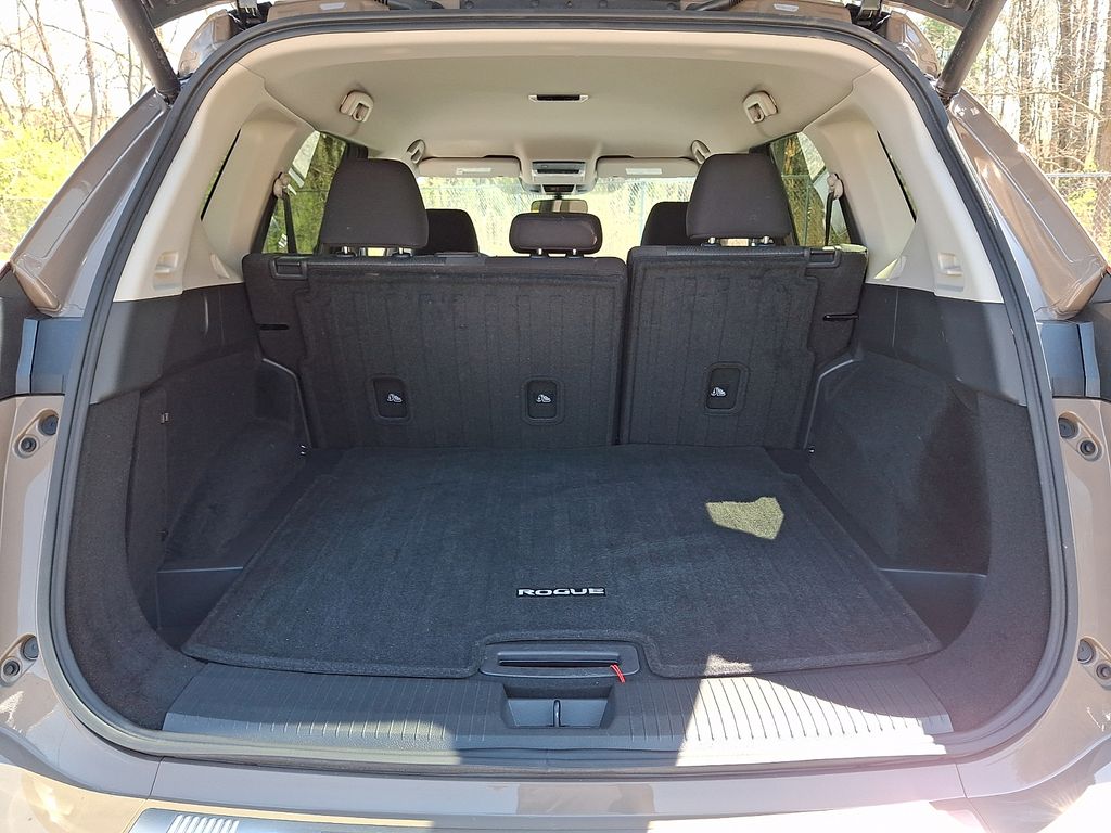 *BLUETOOTH*, *USB*, *SATELLITE RADIO*, *BACK UP CAMERA*, *BLIND SPOT MONITOR*, Rogue SV, 4D Sport Utility, 1.5L DOHC, CVT with Xtronic, AWD, Baja Storm Metallic, Charcoal Cloth, 6 Speakers, Cloth Seat Trim with Patterned Inserts, Front Bucket Seats, Power Liftgate, Radio: NissanConnect with 6 Speakers, Split folding rear seat. Check out all these great options Rogue SV, 4D Sport Utility, 1.5L DOHC, CVT with Xtronic, AWD, Baja Storm Metallic, Charcoal Cloth, 6 Speakers, Cloth Seat Trim with Patterned Inserts, Front Bucket Seats, Power Liftgate, Radio: NissanConnect with 6 Speakers, Split folding rear seat, 4-Wheel Disc Brakes, ABS brakes, Air Conditioning, Alloy wheels, AM/FM radio: SiriusXM, Android Auto and Apple CarPlay, Auto High-beam Headlights, Automatic temperature control, Black Splash Guards (set of 4), Brake assist, Bumpers: body-color, Chrome Rear Bumper Protector, Delay-off headlights, Driver door bin, Driver vanity mirror, Dual front impact airbags, Dual front side impact airbags, Electronic Stability Control, Emergency communication system: NissanConnect Services, First Aid Kit, Floor Mats with 1-Piece Cargo Area Protector, Four wheel independent suspension, Front anti-roll bar, Front Bucket Seats with 8-Way Power Driver Seat, Front Center Armrest, Front dual zone A/C, Front reading lights, Fully automatic headlights, Heated door mirrors, Illuminated entry, Knee airbag, Low tire pressure warning, Occupant sensing airbag, Outside temperature display, Overhead airbag, Overhead console, Panic alarm, Passenger door bin, Passenger vanity mirror, Power door mirrors, Power driver seat, Power steering, Power windows, Premium Paint, Radio data system, Rear anti-roll bar, Rear seat center armrest, Rear side impact airbag, Rear window defroster, Rear window wiper, Remote keyless entry, Speed control, Speed-sensing steering, Speed-Sensitive Wipers, Spoiler, Steering wheel mounted audio controls, Tachometer, Telescoping steering wheel, Tilt steering wheel, Traction control, Trip computer, Variably intermittent wipers, and Wheels: 18" Dark Painted Machine Finished Alloy.